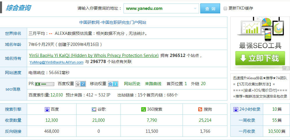 鏁寸珯浼樺寲涓昏浠ョ珯鍐呰皟鏁?绔欏浼樺寲騫舵彁楂樼綉绔欑洰鏍囨祦閲忕殑榪囩▼錛屼竴鑸珯鍐呰皟鏁寸殑鏄綉绔欑粨鏋勩佸眰嬈°佸唴閮ㄦ爣絳懼厓绱犮佸茍灝嗗叧閿瘝鍚堢悊鍒嗛厤鍒扮綉绔欎笂鐨凷EO鎶鏈繃紼嬶紝涓昏浠ヤ漢宸ヤ紭鍖栦負(fù)涓伙紝璋冩暣鍚庤緗戠珯鏇寸鍚堟敹褰曘佸揩鐓ф洿鏂般佹帓鍚嶇瓑SEO瑙勫垯錛屽悎鐞嗙殑璋冩暣鍙ぇ澶х緝鐭叧閿瘝鎺掑悕鍑虹幇鍛ㄦ湡錛屽叧閿瘝鎺掑悕紼沖畾涓婂崌絳夌壒鐐廣傜珯澶栦紭鍖栦富瑕佷互寤虹珛楂樿川閲忓閾俱侀珮璐ㄩ噺鍙嬮摼銆佹潈閲嶄紶閫掋佹悳绱㈠紩鎿庢敹褰曘佸叧閿瘝灞曠幇銆佺洰鏍囪闂佸揩鐓ц瘎綰ф彁鍗囩瓑绔欏浼樺寲涓轟富銆傚湪鏈榪戜竴孌墊椂闂?STRONG>seo欏鵑棶灝嗚窡闅忎簯钀ラ攢鐨勯偄鑰佸笀瀛︿範(fàn)涓孌墊椂闂達(dá)紝涓嶇煡閬撹嚜宸辯殑鑳介鎮(zhèn)熷灝戯紝灝辨妸浠栧啓鎴愪竴綃囨枃绔狅紝鏉ュ垎浜粰澶у錛?棣栧厛鐪嬩笅鍩熷悕鐨勬儏鍐碉細(xì)www.yanedu.com