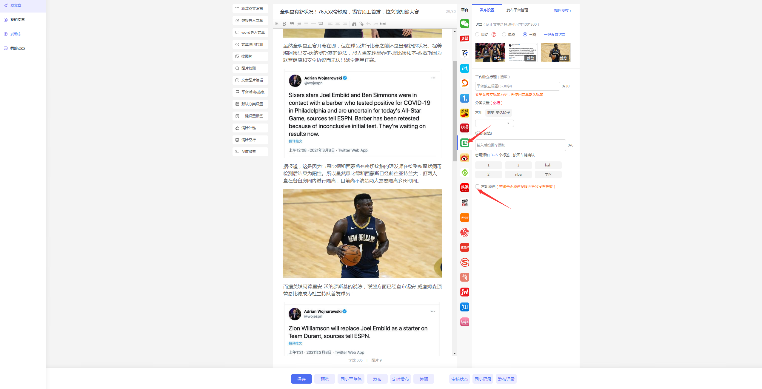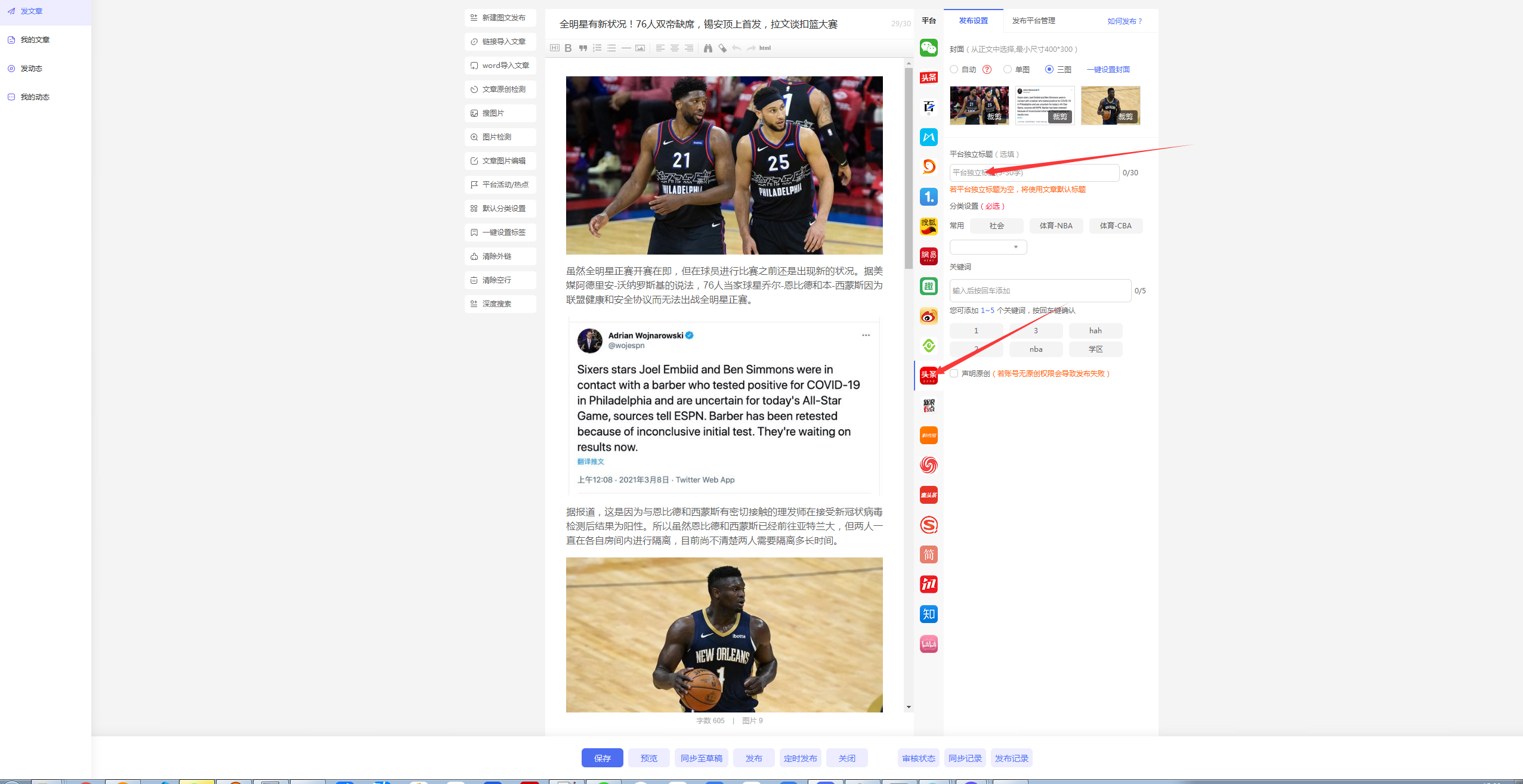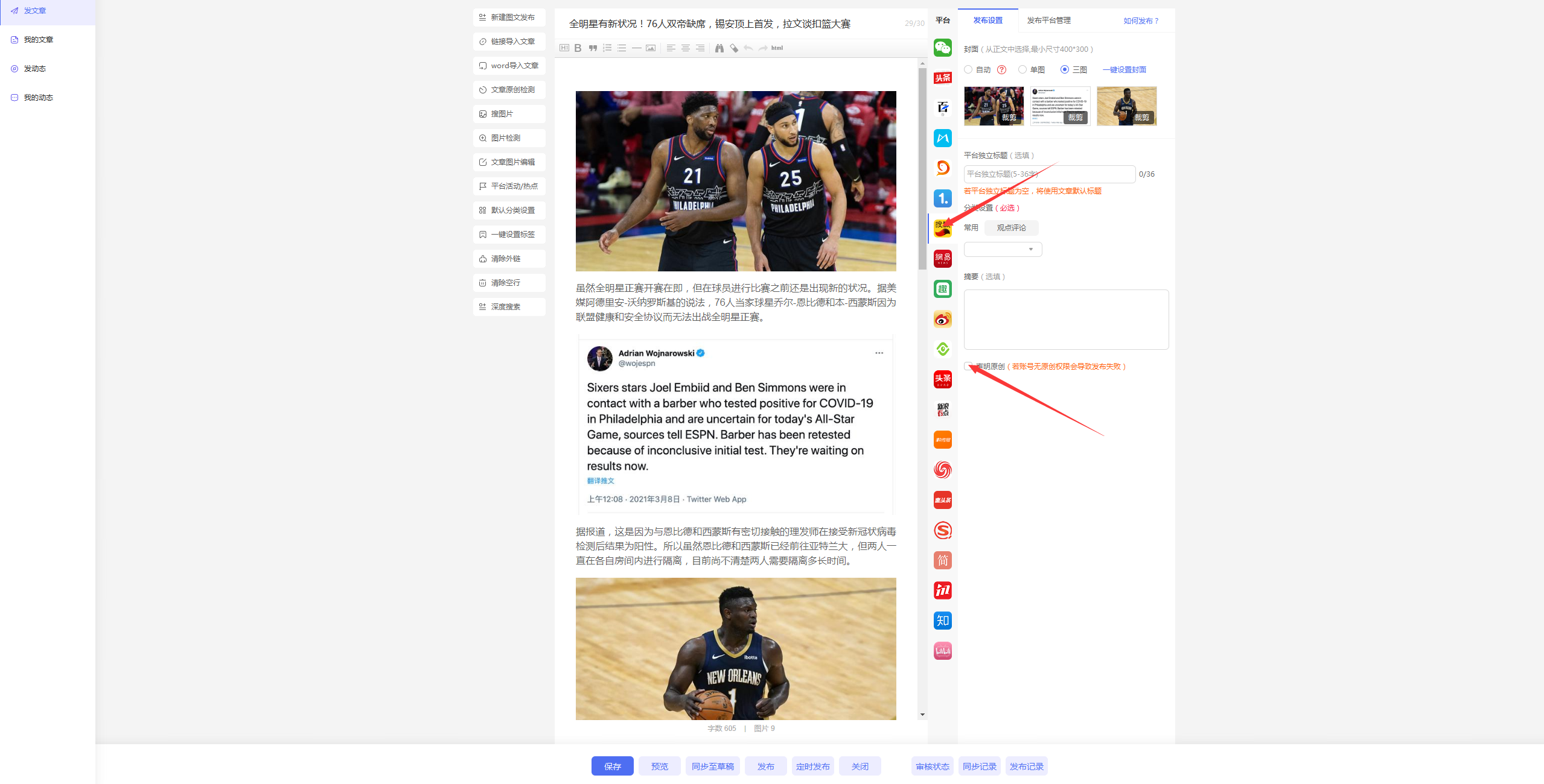 澶存潯鏂囩珷鍙戝竷鍐呭涓笉鍏佽娣誨姞鍏跺畠騫沖彴閾炬帴錛屾?zhèn)ㄥ彲浠ラ氳繃鍔╂墜鐨勬竻闄ゅ閾懼姛鑳芥潵鍒犻櫎錛岃涓嬪浘,娓呴櫎鎴愬姛鍚庣偣鍑?yán)L枃绔犱繚瀛樻寜閽紝鐒跺悗鍒板悓姝ヤ腑蹇?jī)閲嶈瘯鍗冲彲銆?