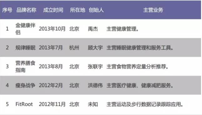 通過列表可以看出,死亡企業多以健康管理為主,從事該領域的企業較多,不利于形成競爭優勢,一旦沒有巨頭注資,很容易被行業淘汰。
