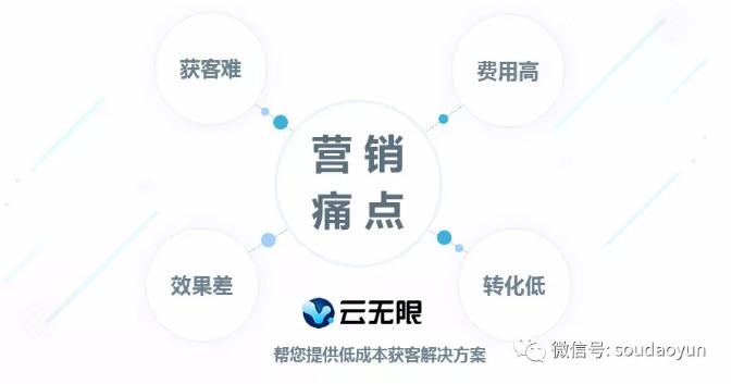 中小微企業通常面臨獲客難、費用高和轉化差的營銷痛點,如何低成本獲客是擺在企業老板心里的一個大難題。看過我文章的朋友絕大部分是宅男一枚,以學習SEO技術的為主的。今天我們不談技術只談思維,把我創業過程中所遇到的營銷難題以及如何解決的經驗分享給大家。我是云營銷創始人邢慶濤,希望草根創業者能通過我的經歷找到點靈感,少走點彎路,少交點續費,把主要精力放到公司的戰略層面及團隊管理上。