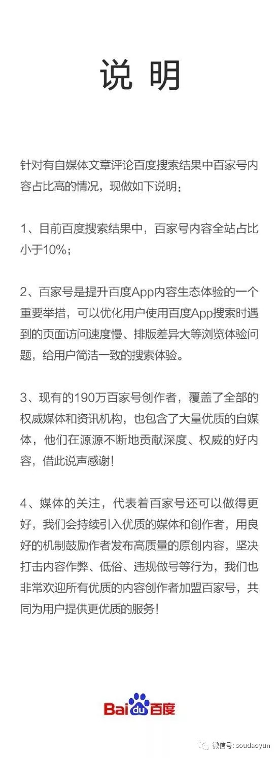 這篇《搜索引擎百度已死》的文能引起百度官方重視,足以證明該文章的影響力不可小覷。因為百度第二天就發出了公告說明。內容如下: