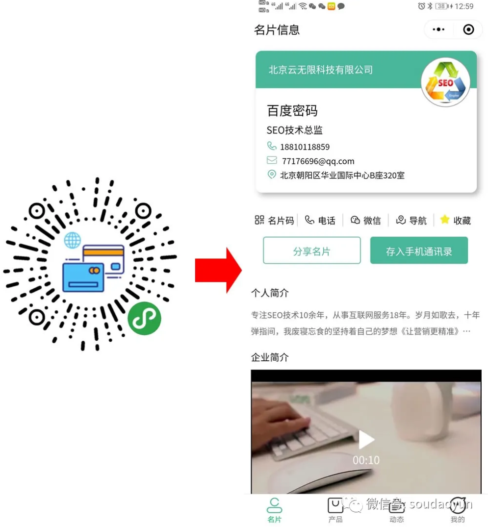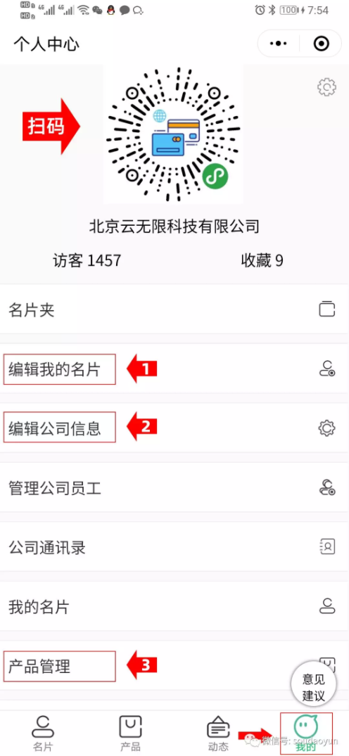 微信搜索“搜到名片”,微信授權后點擊“我的”進行資料完善,或者掃碼進入編輯公司資料。
